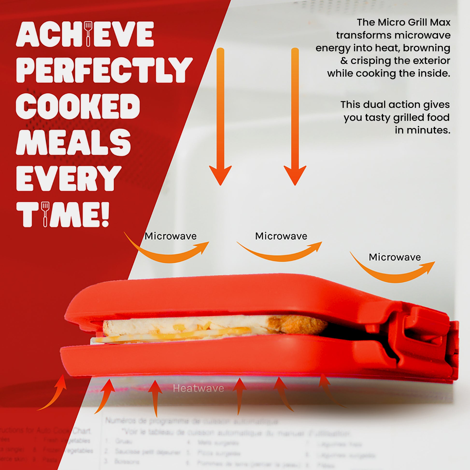Whether you're making grilled paninis, crisp sandwiches, toasted wraps, or quick grilled cuts of meat and fish, the Micro Grill Max™ delivers delicious results in your microwave — fast.